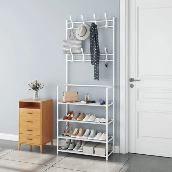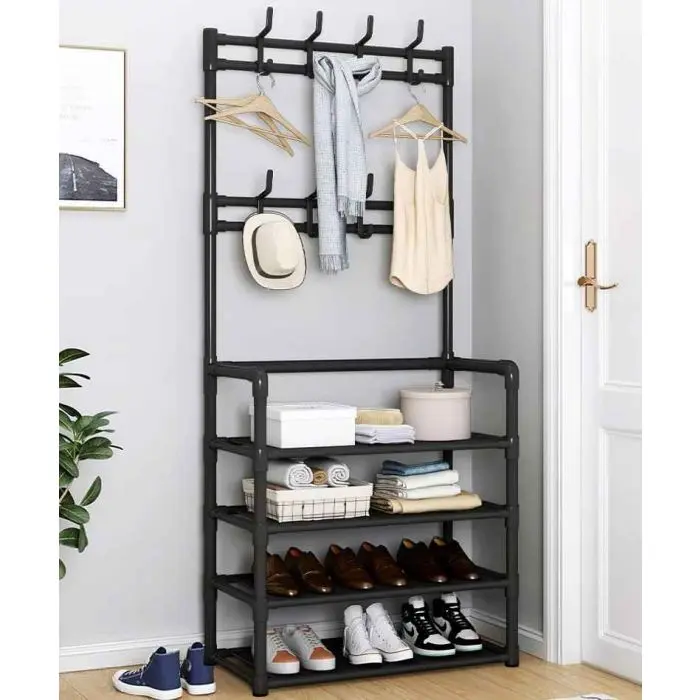 Mantené tus espacios organizados con este funcional organizador que combina almacenamiento para calzado y perchero en un solo producto. Cuenta con 4 estantes ideales para zapatos y 7 percheros para colgar ropa, bolsos o accesorios.